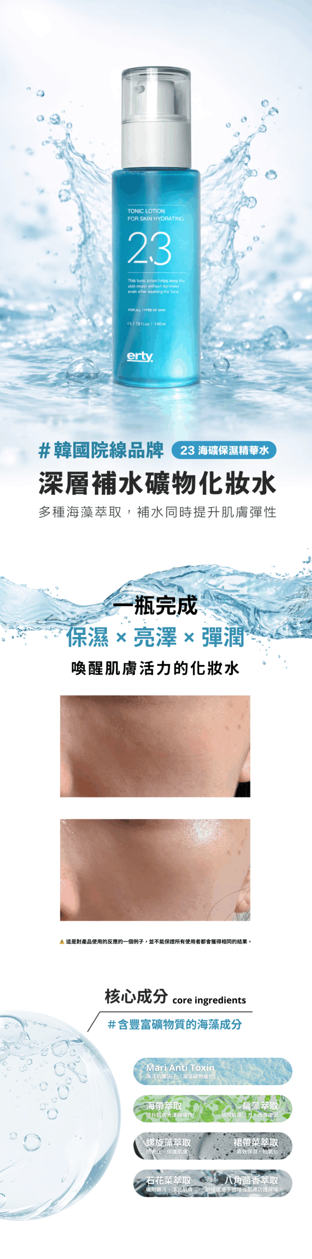 · 蘊含多重海洋礦物與海藻精華,為肌膚補充豐富水分與能量